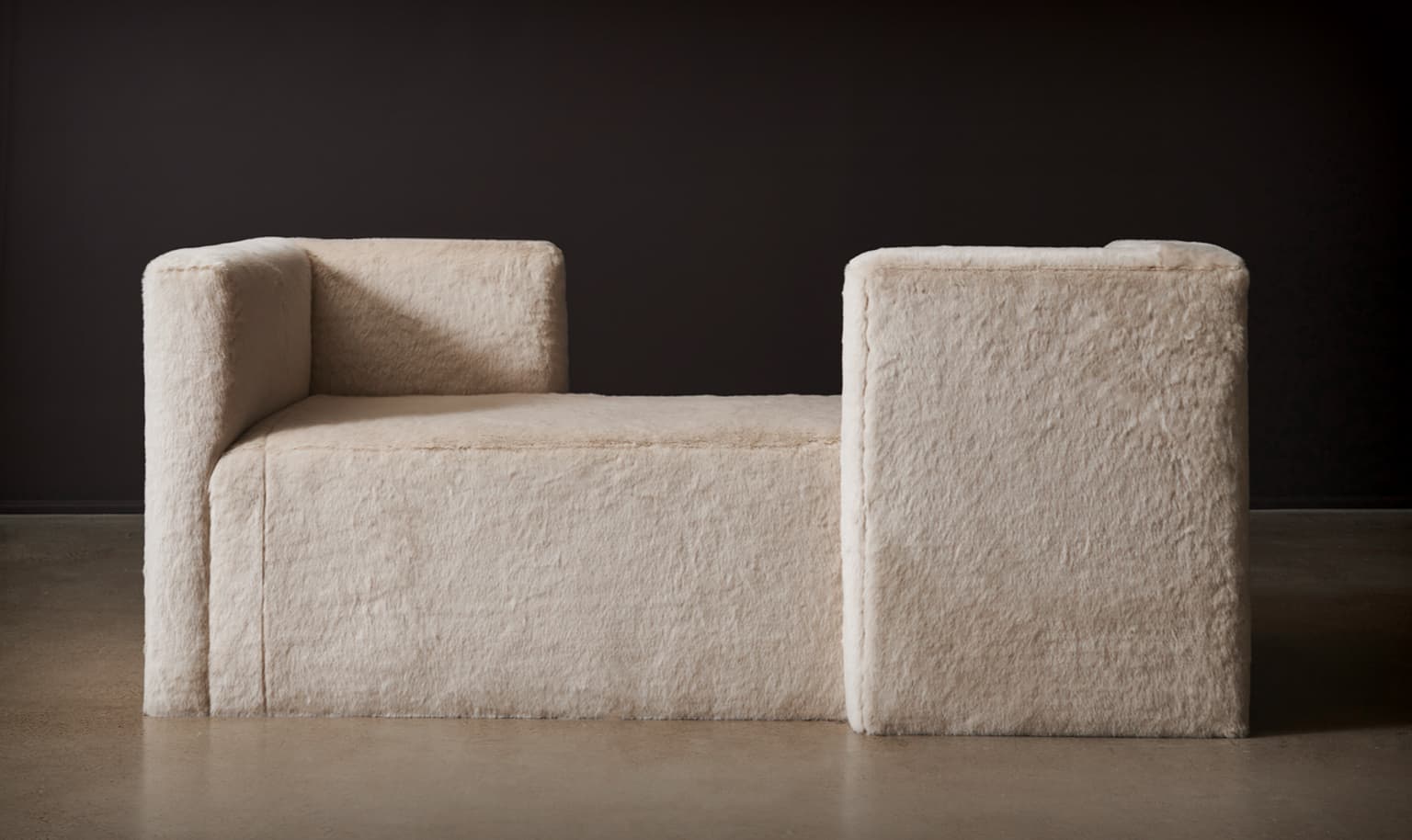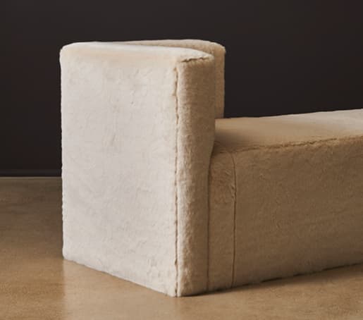 The tête-à-tête sofa sparks intimate conversations, whether about the alluring piece or taking place on it. Its design honors the timeless art of symmetry through its fusion of glamorous forms. In this configuration, the piece celebrates the culmination of Grant’s years of expertise in the application of shearling and fur.